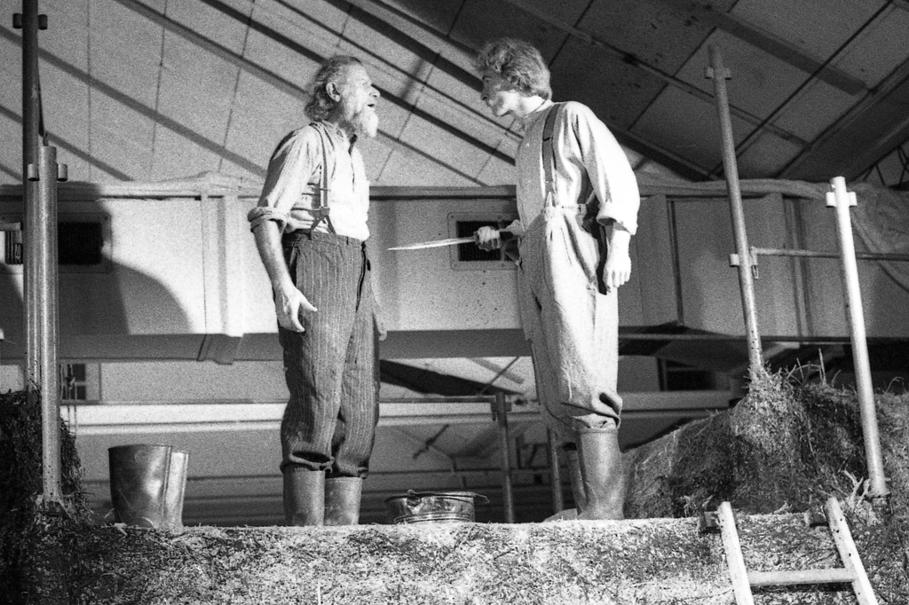 Das StückDürrenmatts Werk "Der Stall das Augias", 1962 entstanden und 1963 am Zürcher Schauspielhaus uraufgeführt, findet Anlehnung in der griechischen Mythologie: Die Hauptfigur ist der griechische Nationalheld Herkules, Sohn der Götter, der über unmenschliche Kräfte verfügt, der schon als Kleinkind Riesenschlangen und Hydras tötete. Diese berühmte Fähigkeit benutzte nun der Dramatiker, um ihr einen völlig anderen Wendepunkt zu geben: Auf Wunsch von Augias, dem Bauern-Präsidenten der Republik Elis soll Herkules nun seine Stärke dazu verwenden, den Eliern ihr total vermistetes Land zu säubern. Begleitet wird er dabei von seiner Geliebten Deianeira und seinem Privatsekretär Polybios; die Beziehungen dieser drei Figuren untereinander drückt sich parallel verlaufend auf den Kernpunkt der Aussage aus: Die Verbindung zwischen Stärke und Heldentum (Herkules), Schönheit und Geist in einem absurden Verhältnis zur Liebesfähigkeit (Deianeira), und die körperliche Schwäche verbunden mit Intellekt und Schlauheit (Polybois). Die allegorischen Begriffe widerspiegeln die Lebensbelange der Menschheit, die nach dieser vollkommenen Verbindung strebt und diese nie erreichen wird. Die Geschichte ist mit viel Wortwitz, Ironie und brisant-politischen Andeutungen gespickt; so wird Herkules, der sich-weil in Geldnöten-für die Säuberung bereiterklärt hat, an seinem Vorhaben immer wieder durch verschiedene Komissionen gehindert. Ob es ihm trotzdem gelingen wird