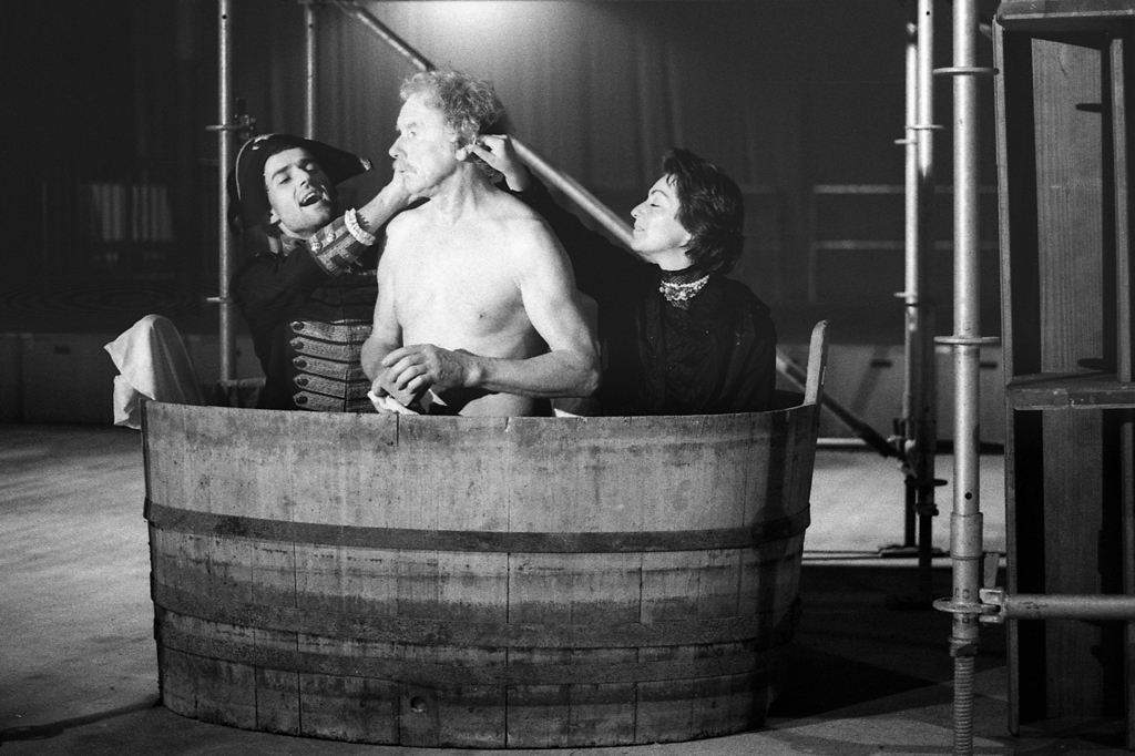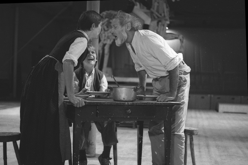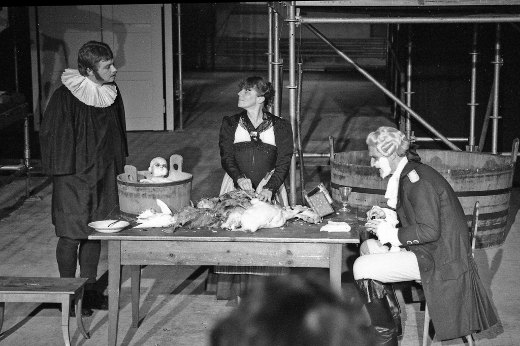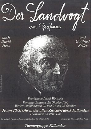 Das StückDas Stück zeigt den Alltag des alten, edlen, aber todkranken Salomon Landolt. Alt-Landvogt von Greifensee. Ihn überfallen Erinnerungen und Träume, welche sich auf ungebührliche Weise verselbständigen. Der noch junge Salomon Landolt bittet seine fünf Flammen zu sich ins Schloss Greifensee. Anstatt sich einen sonnigen Tag lang plangemäss und geziemend zu vergnügen, geschieht das Unvorhergesehene, passiert der Aufstand der Weiber. So um seine Version seiner Beziehungsgeschichten gebracht, erweist sich das edle Gehabe unseres doch recht einsamen Greises als leere Hülse. Der auf seine Verletzlichkeit zurückgeworfene Mensch wird endlich frei für direkten Kontakt, den er denn auch in seiner Haushälterin, der Frau Marianna, findet. Die Erzählung einer Liebesgeschichte also.